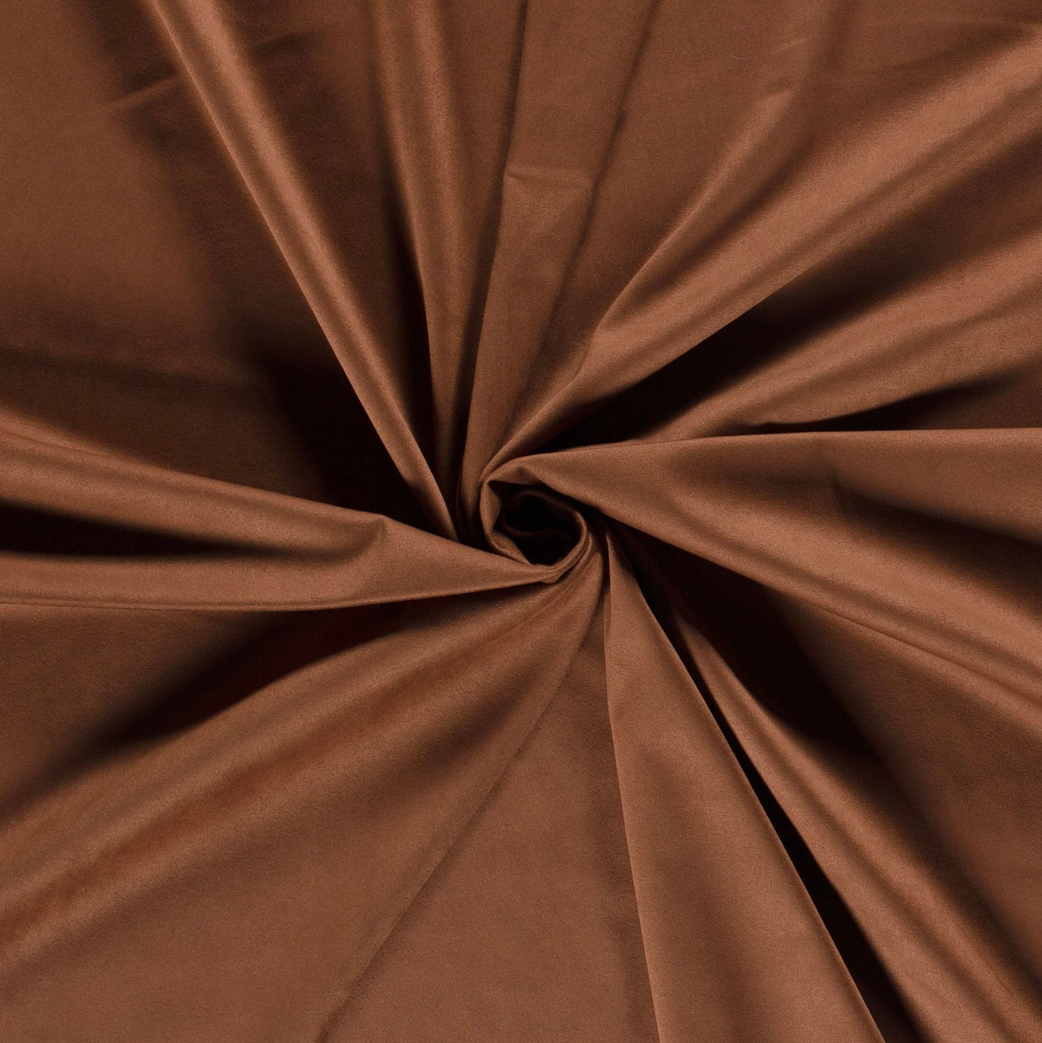 Ten elegancki scuba w ciepłym brązowym kolorze zachwyca aksamitnie miękkim wyglądem zamszu i cudownie gładkim układem. Powierzchnia przypomina delikatną skórę welurową – subtelnie matową, elegancką i z lekką strukturą, która nadaje tkaninie głębię i charakter.