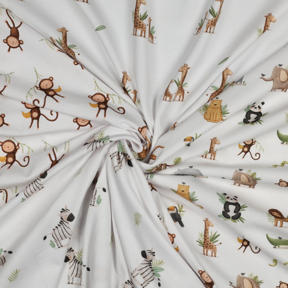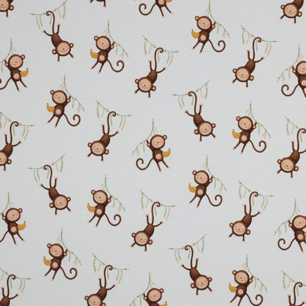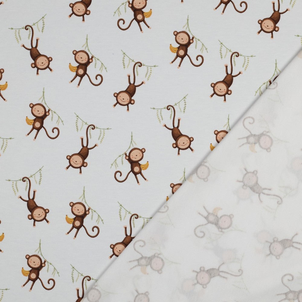 Dżersej organiczny - nadruk cyfrowy monkey white