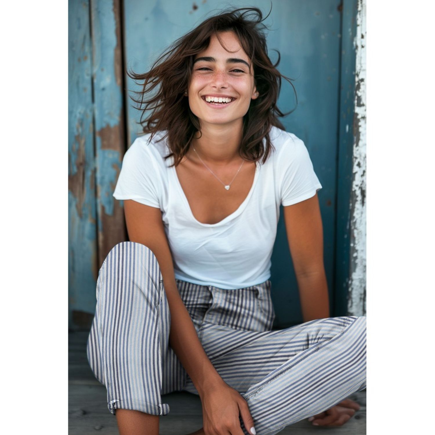 Ta dżinsowa tkanina łączy w sobie swobodny dżinsowy wygląd ze świeżym, nowoczesnym wzorem w paski. Drobne, wyraźne paski w kolorze jasnej bieli biegną przez subtelnie teksturowaną dżinsową bazę - jednolitą, prostą i ponadczasowo elegancką. Zawartość stretchu sprawia, że tkanina wygodnie dopasowuje się do ciała i podąża za każdym ruchem - idealna na wygodne spodnie, spódnice, sukienki lub dopasowane do sylwetki kurtki. Białe paski nadadzą Twoim projektom szycia smukły, elastyczny wygląd i będą wyglądać jednocześnie sportowo i szykownie. Niezależnie od tego, czy chodzi o lekki, letni dżinsowy look, stroje marynistyczne czy stylową odzież uliczną: ten dżinsowy stretch z białymi paskami jest wszechstronnym towarzyszem, który zmieni każdy samodzielnie uszyty element w ulubiony.