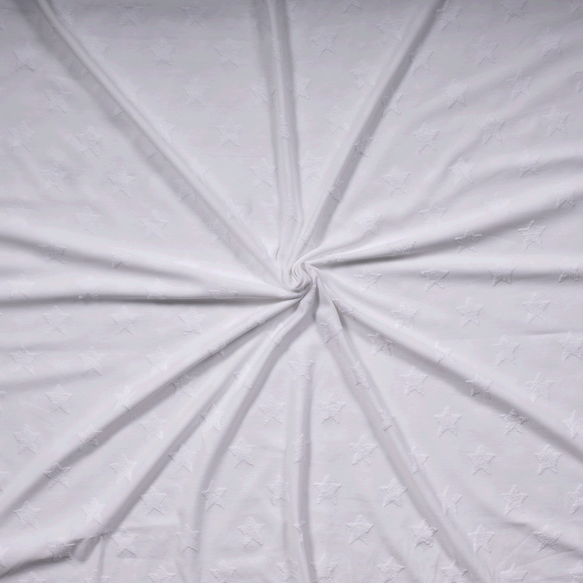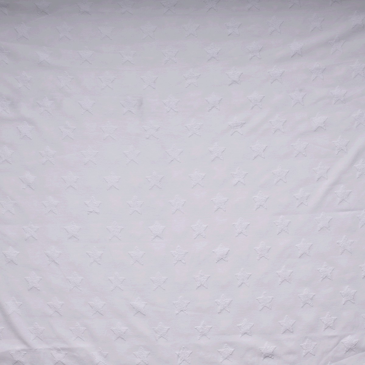 Ten jersey żakardowy zachwyca ponadczasowym, pięknym wzorem gwiazd na delikatnym kremowym tle. Delikatnie wplecione gwiazdy wydają się lekko wypukłe, nadając tkaninie szlachetny, strukturalny wygląd – nic nie jest nadrukowane, wszystko jest misternie utkane.