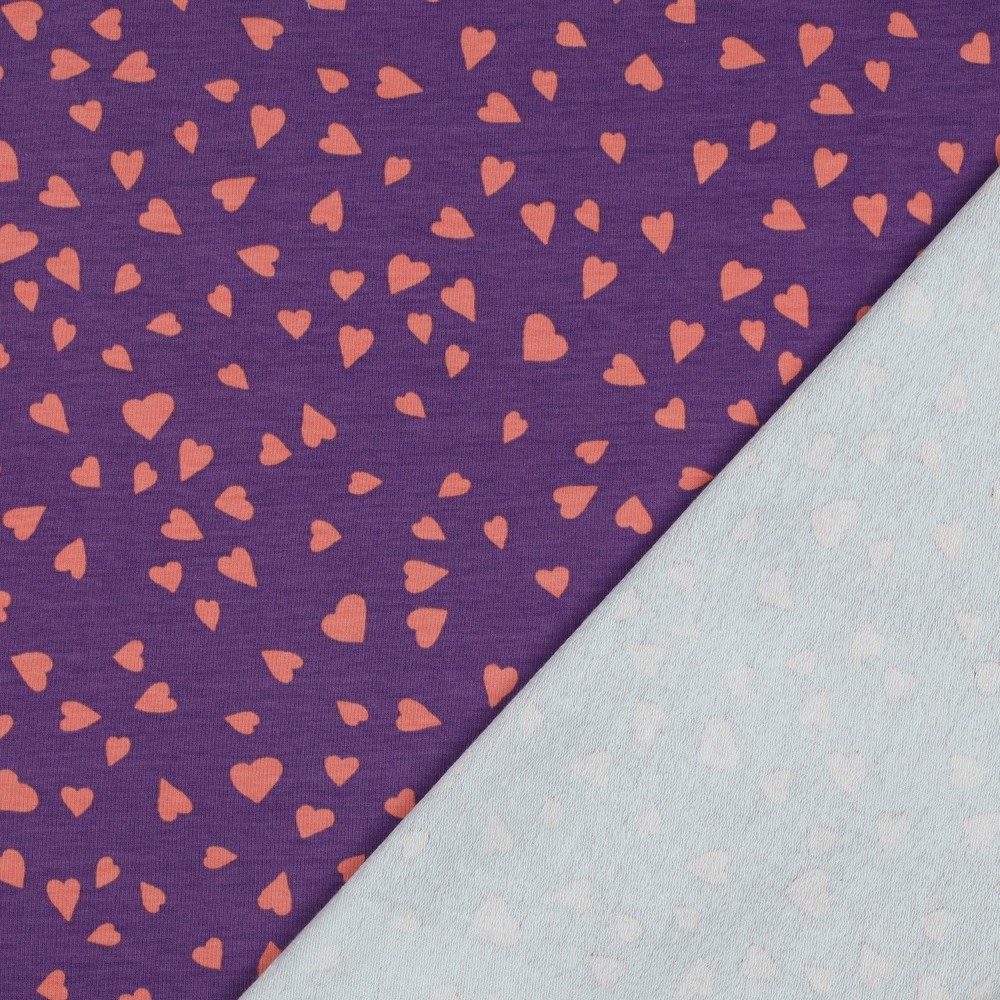 Delikatny, zabawny i jednocześnie cudownie nowoczesny – ten letni French Terry zachwyca morzem małych serduszek w różnych odcieniach fioletu. Na miękkim tle serduszka tańczą blisko siebie, tworząc uroczy, radosny wzór, który od razu poprawia nastrój.