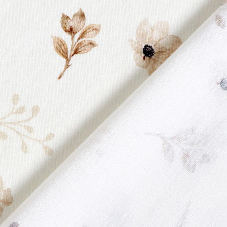 GOTS Dżersej bawełniany akwarelowe kwiaty i gałązki nadruk cyfrowy – biel/jasny brąz