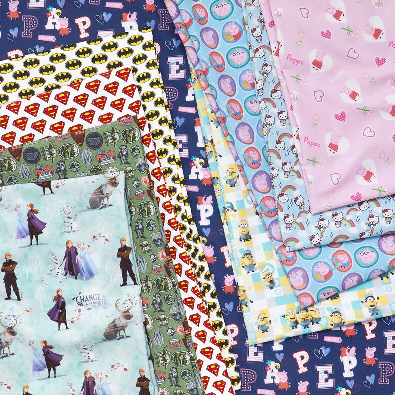 Na drobno utkanym materiale są nadrukowane różne motywy znane z komiksów i filmów. Uszyj z niego oryginalne okładki na ulubione książki, wykorzystaj jako podszewkę kieszeniówkę lub zaprezentuj się jako prawdziwy fan w uszytej z niego koszuli lub bluzce.