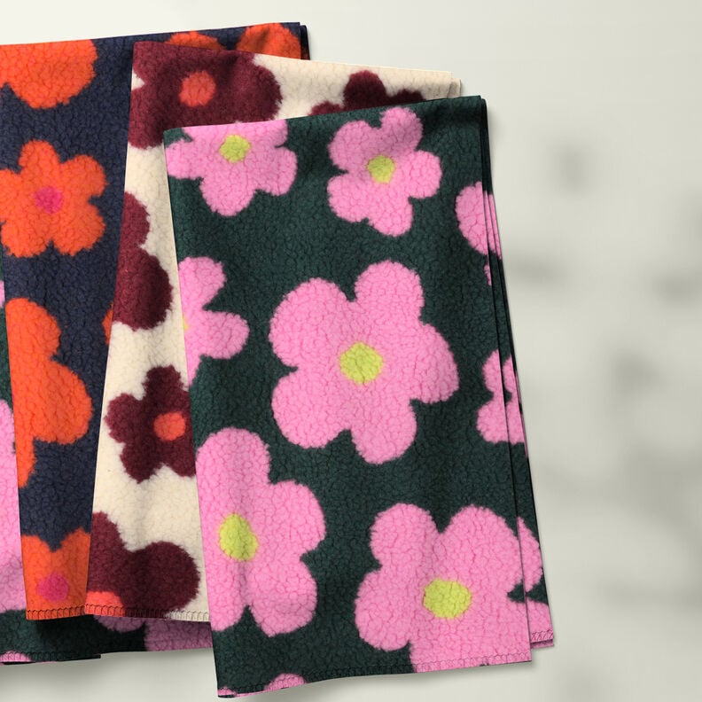 Puszysty plusz kwiaty | Poppy Fabrics – ciemna zieleń/pink