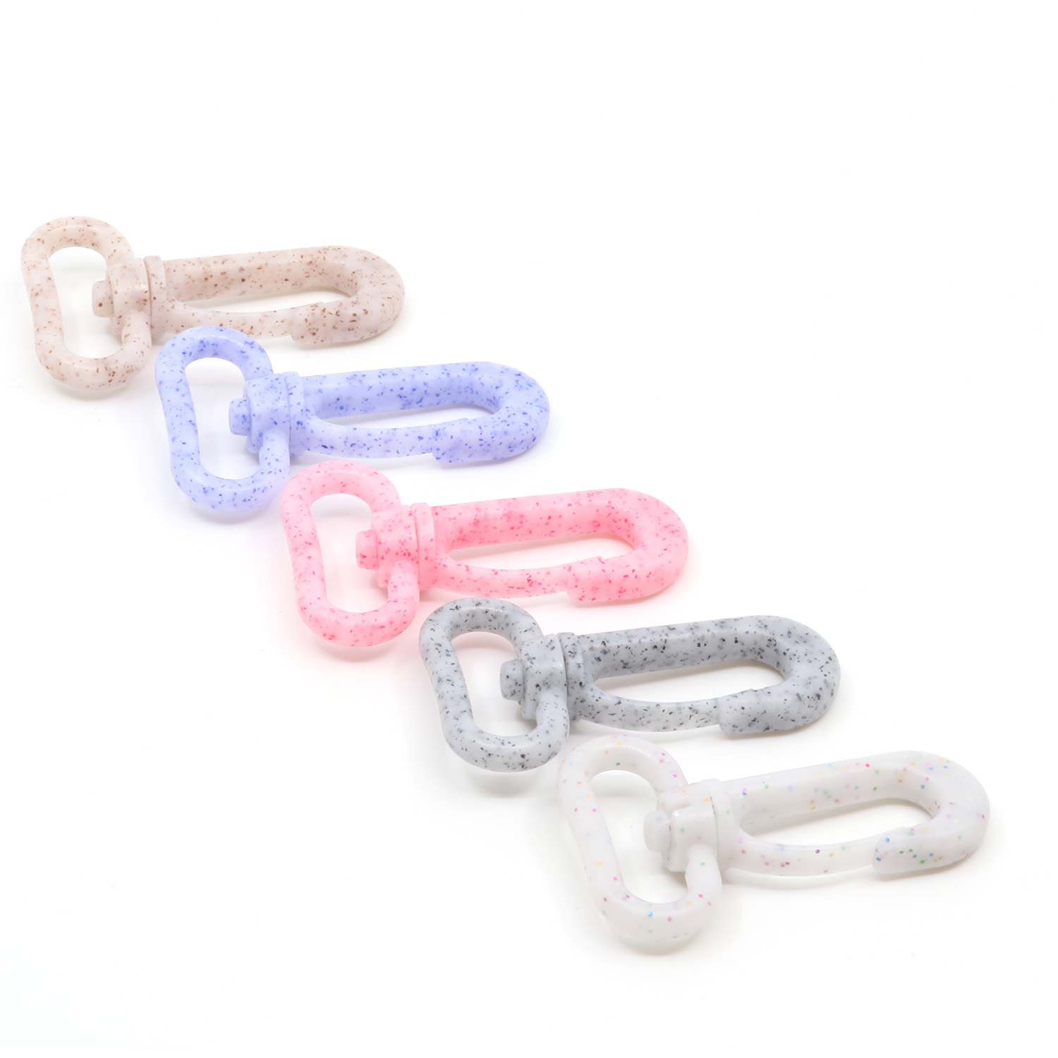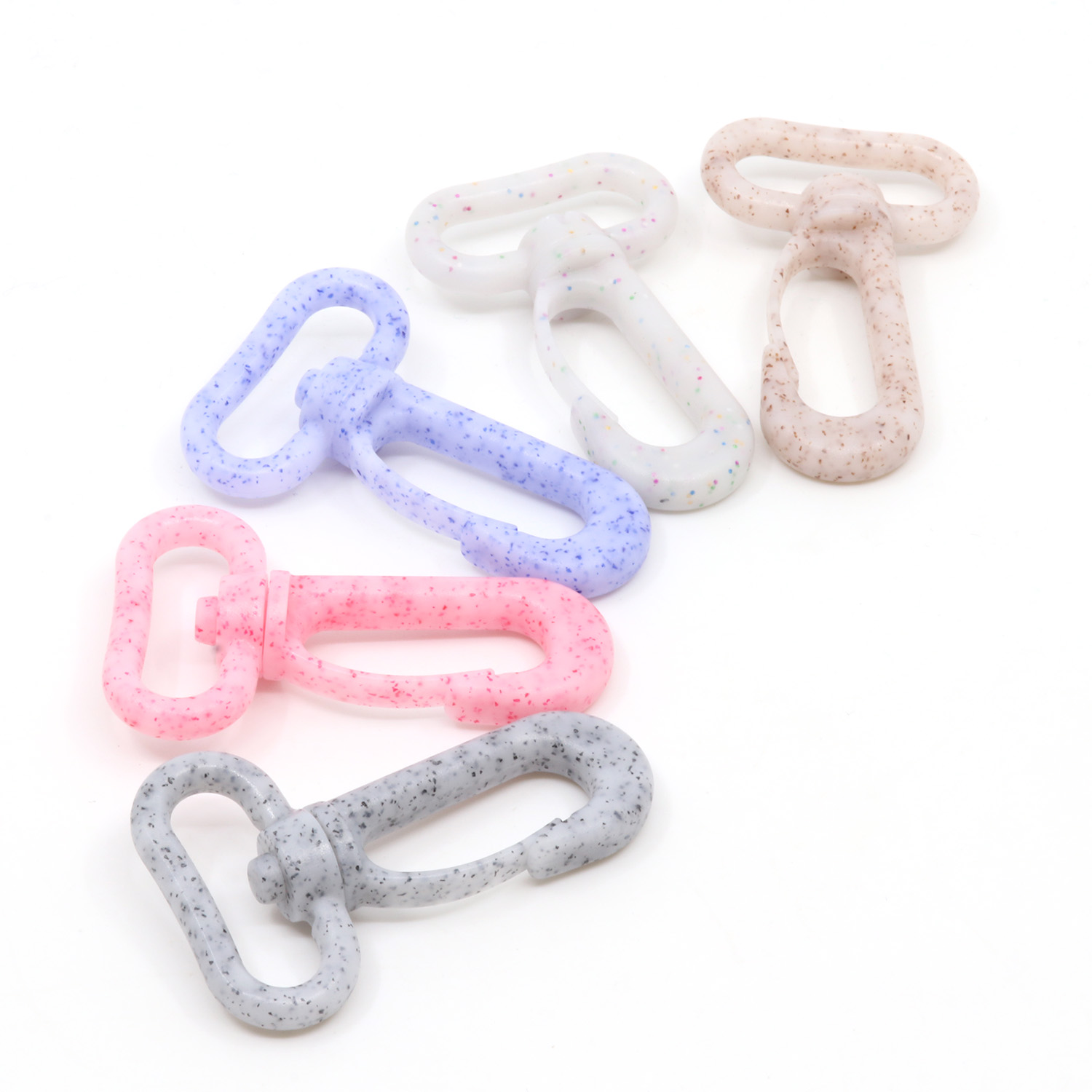 Te plastikowe karabińczyki o marmurkowym wyglądzie to wisienka na torcie dla Twoich projektów torebek. Delikatne pastelowe odcienie - od delikatnego różu, pudrowego beżu i jasnego bzu po świeżą miętę i delikatną szarość - są przeplatane drobnymi, kolorowymi plamkami i przypominają delikatne kropki konfetti. Rezultatem jest nowoczesny, zabawny efekt marmuru, który natychmiast wzbogaca każdy projekt.