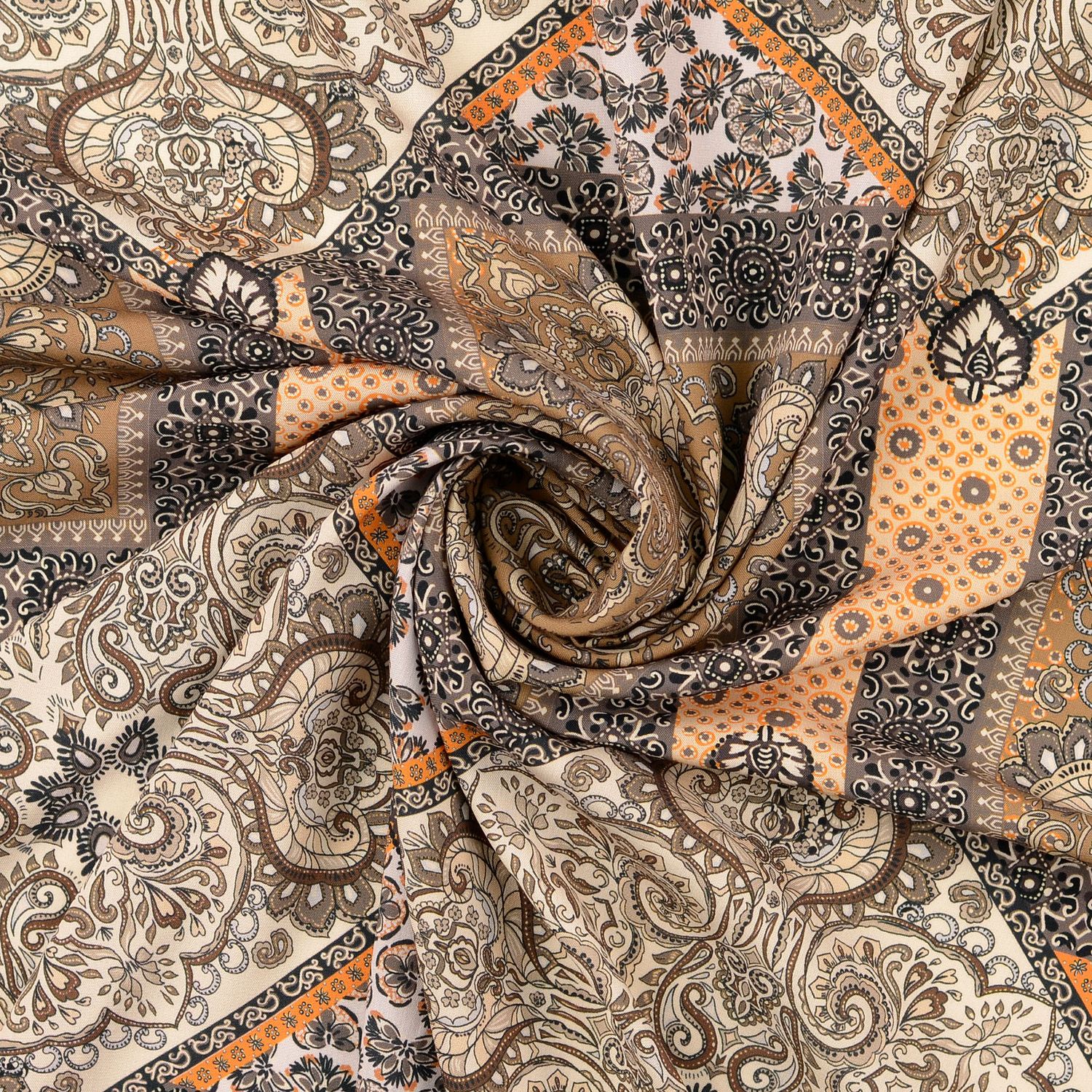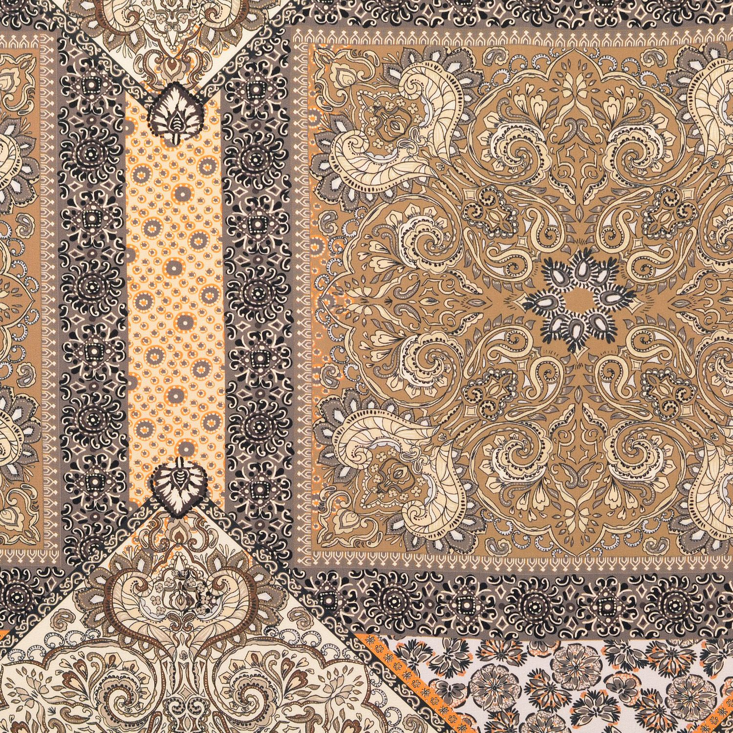 Popelina wiskozowa - cyfrowy nadruk patchwork brązowy