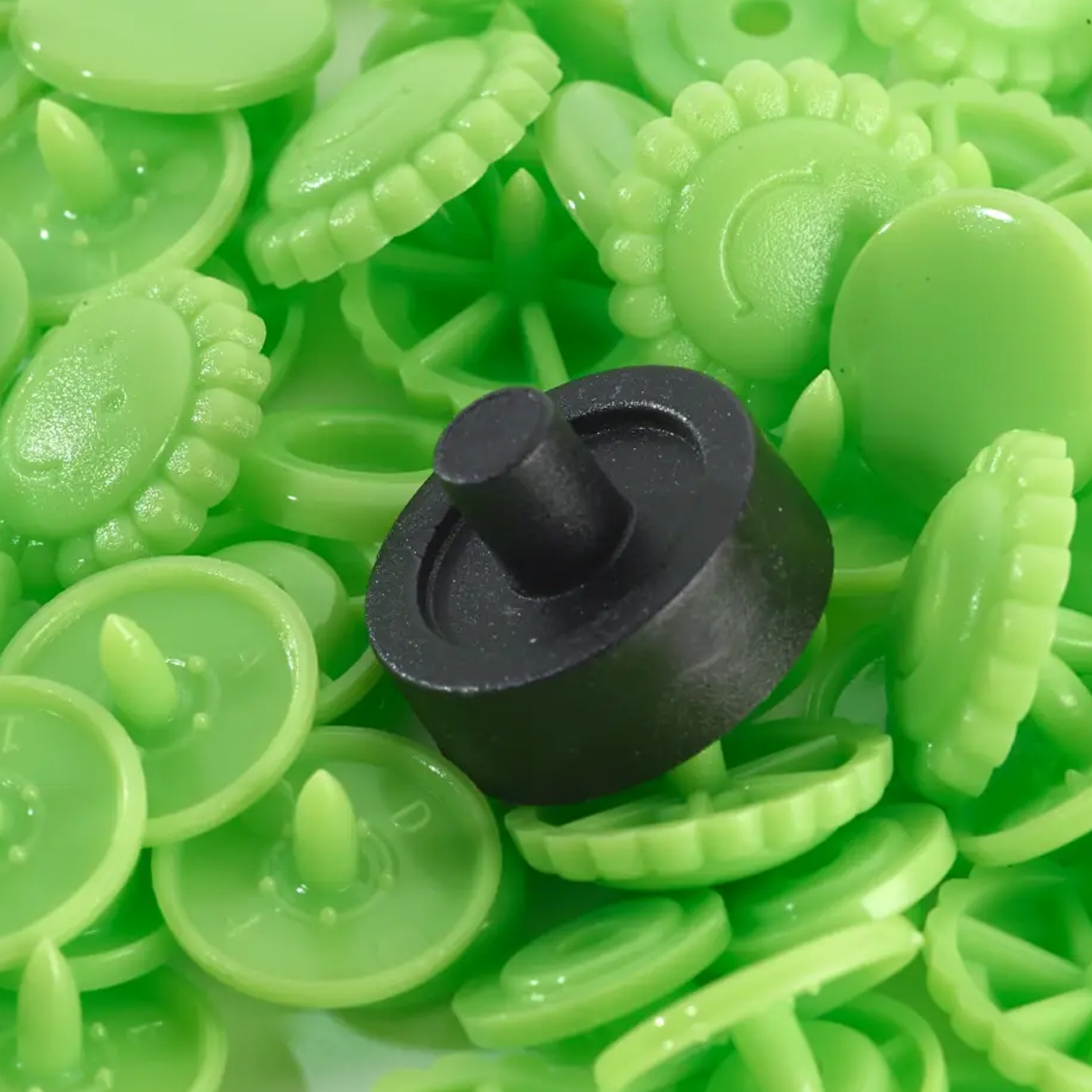 Świeże jak chrupiące jabłko: ćwieki Prym Snap w delikatnym kolorze jabłkowej zieleni natychmiast wprowadzą dobry nastrój do każdego projektu krawieckiego. Uroczy kształt kwiatka sprawia, że idealnie przyciągają wzrok - czy to na ubraniach dla niemowląt i dzieci, śliniakach, kurtkach, czapkach czy małych akcesoriach, takich jak torby, torby gimnastyczne i przybory.
