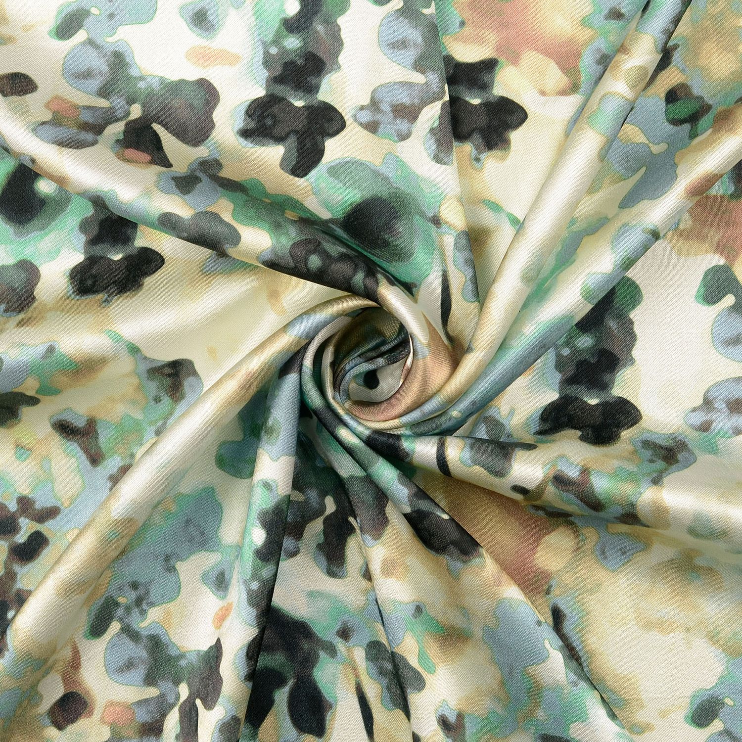 Delikatny połysk satyny podkreśla płynne niuanse i sprawia, że wzór za każdym razem wygląda inaczej w zależności od padającego światła – czasem subtelnie, czasem wyrazisto. Idealna na eleganckie bluzki, sukienki, spódnice lub chusty, które poruszają się przy każdym kroku i emanują nutą ekskluzywności.