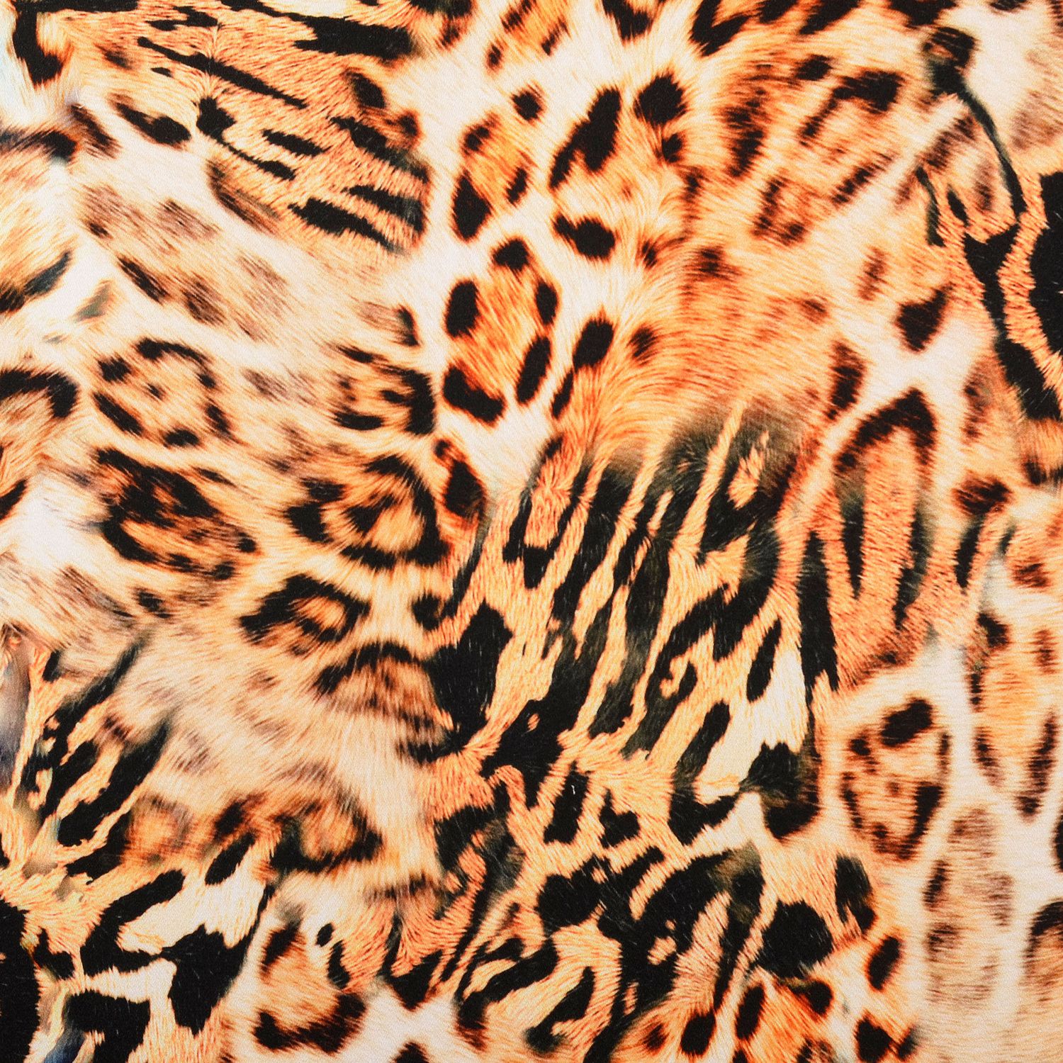 Druk cyfrowy wyraźnie podkreśla wzór Leo – czasem gęściej, czasem rzadziej rozłożony – tworząc żywy, a jednocześnie stylowo stonowany wygląd. Idealny na damskie bluzki, zwiewne sukienki, spódnice, tuniki czy eleganckie chusty, które przyjemnie układają się na ciele.
