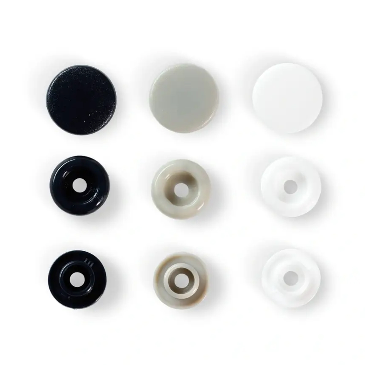Dodaj stylowe akcenty do odzieży niemowlęcej i dziecięcej: Przypinki Prym Snap w kolorze granatowym, szarym i białym dodadzą świeżego, nowoczesnego akcentu kolorystycznego do śpioszków, kurtek, śliniaczków, czapek i akcesoriów.